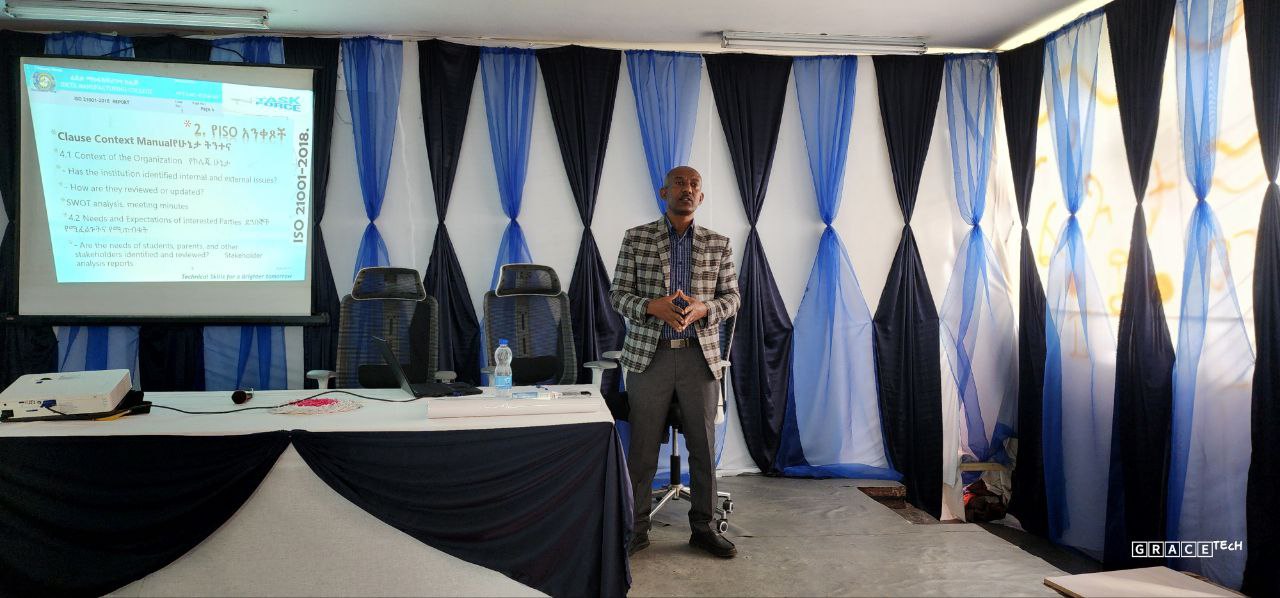 በዚህ ስልጠና ላይ ተሳታፊዎች ስለ ISO 21001:2018 መሰረታዊ መርሆች፣ መስፈርቶች እና እንዴት የትምህርት ጥራት ማኔጅመንት ስርዓትን መገንባትና ማስኬድ እንደሚቻል ጥልቅ ግንዛቤ አግኝተዋል። በተለይም የኦዲት ስራዎችን በሚመለከት፣ የኦዲት እቅድ ማውጣት፣ መረጃ መሰብሰብ፣ ግኝቶችን መተንተን እና ሪፖርት ማቅረብ በሚሉ ጉዳዮች ላይ ሰፋ ያለ ልምምድ ተደርጓል። ይህም ኮሌጁ የጥራት ደረጃውን የጠበቀ የውስጥ ኦዲት ስርዓት እንዲዘረጋና እንዲያጠናክር ያስችለዋል።